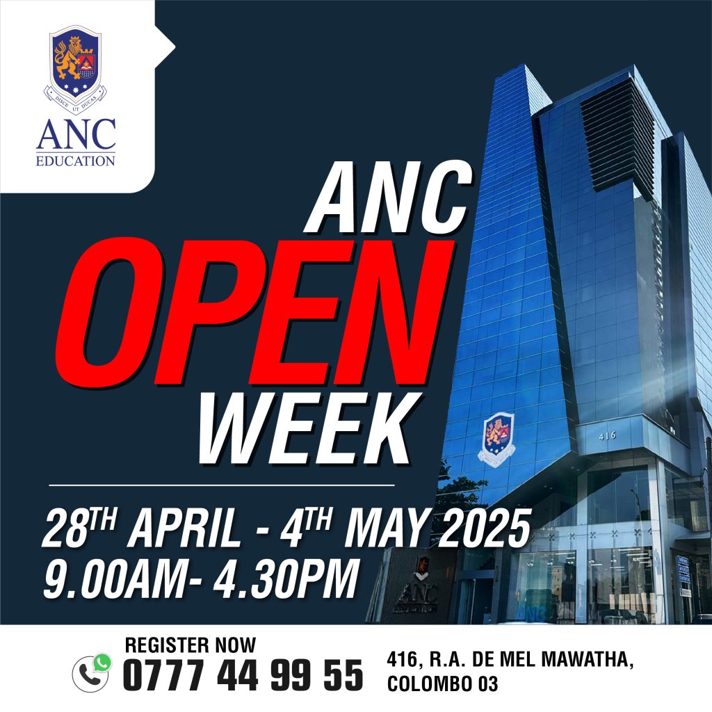 Join us for the ANC Open Week on 28th April – 4th May 2025 from 9.00AM to 4.30PM at 416, R.A. De Mel Mawatha, Colombo 03 and take the first step towards studying in the USA, UK, Canada, Australia, New Zealand, or Dubai.